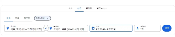 1. 출발지, 도착지, 기간을 입력합니다